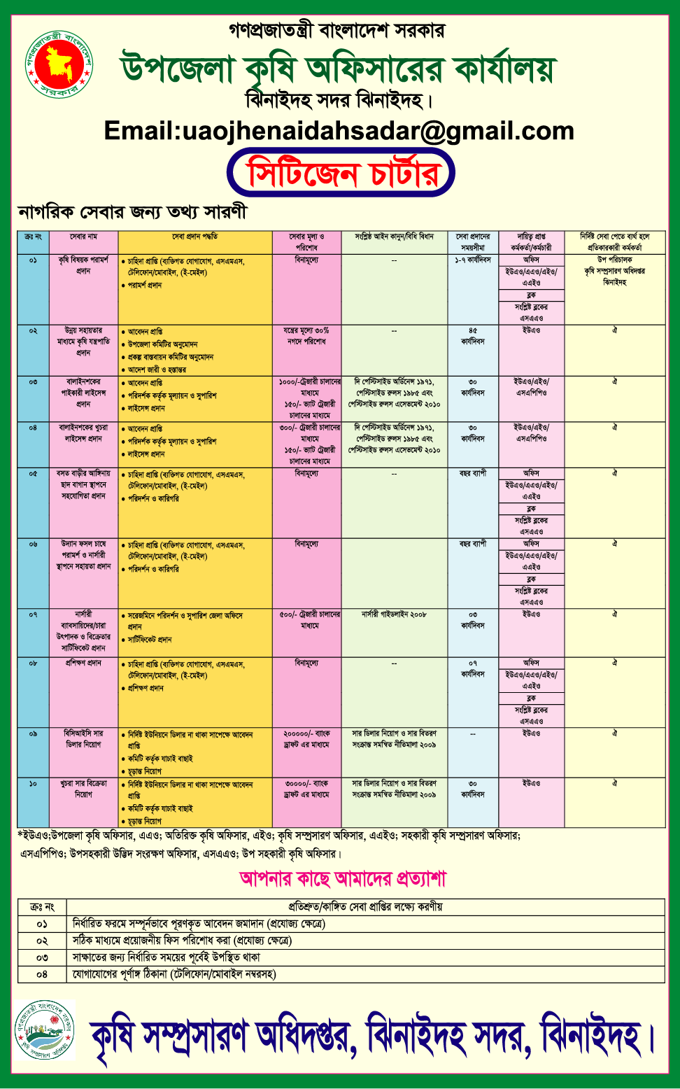 | ক্র: নং | সেবারধরণ | সেবা